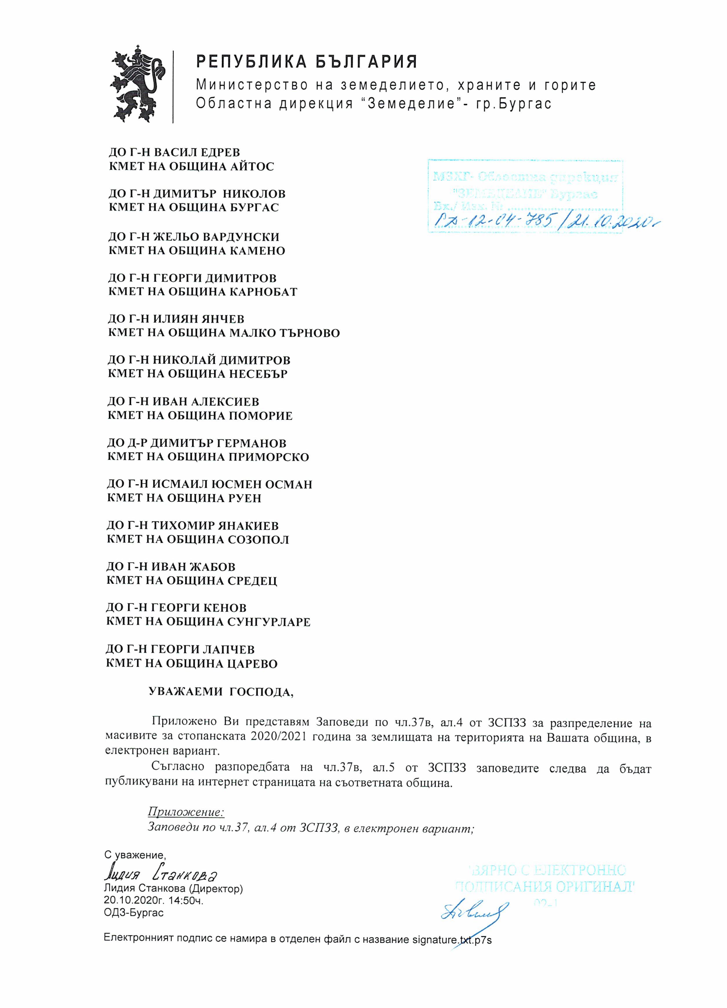 Заповеди по чл. 37в, ал. 4 от ЗСПЗЗ